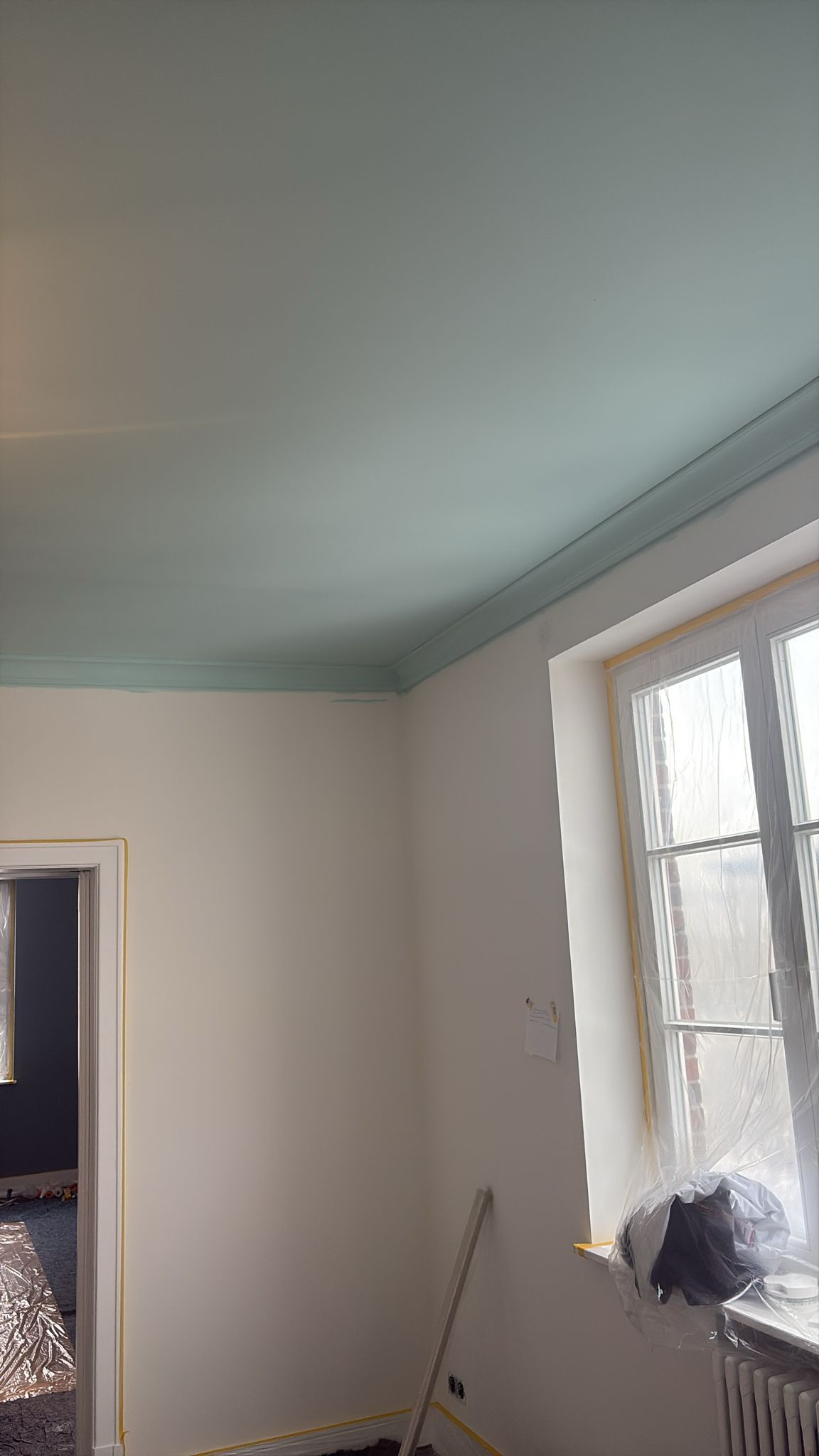 Das Streichen der Decke mit einem dezenten Farbakzent ist eine hochwertige Malerarbeit, die Räumen eine moderne und elegante Ausstrahlung verleiht. Im Vergleich zu einer klassischen weißen Decke sorgt ein farblich abgestimmter Deckenanstrich für mehr Tiefe, Ruhe und ein harmonisches Gesamtbild.